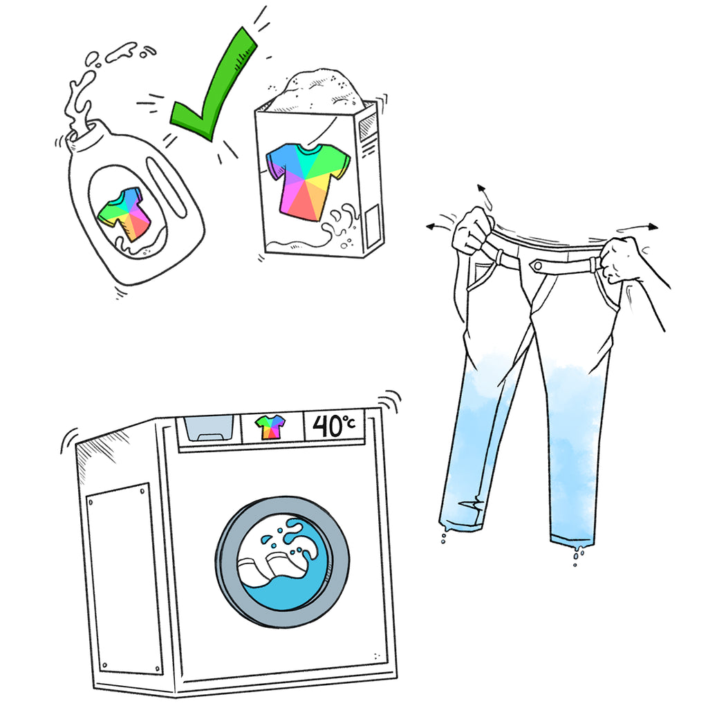 Une fois le cycle de lavage terminé, il est préférable de sortir les pantalons directement du lave-linge afin d’éviter toute décoloration.