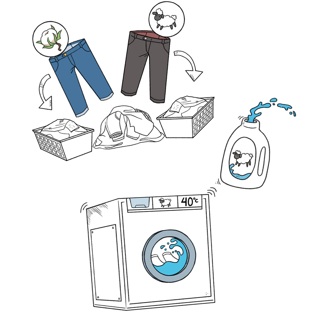 Triez avec soin votre linge. Les pantalons en laine mélangée ne doivent pas être lavés en même temps que d’autres matières.