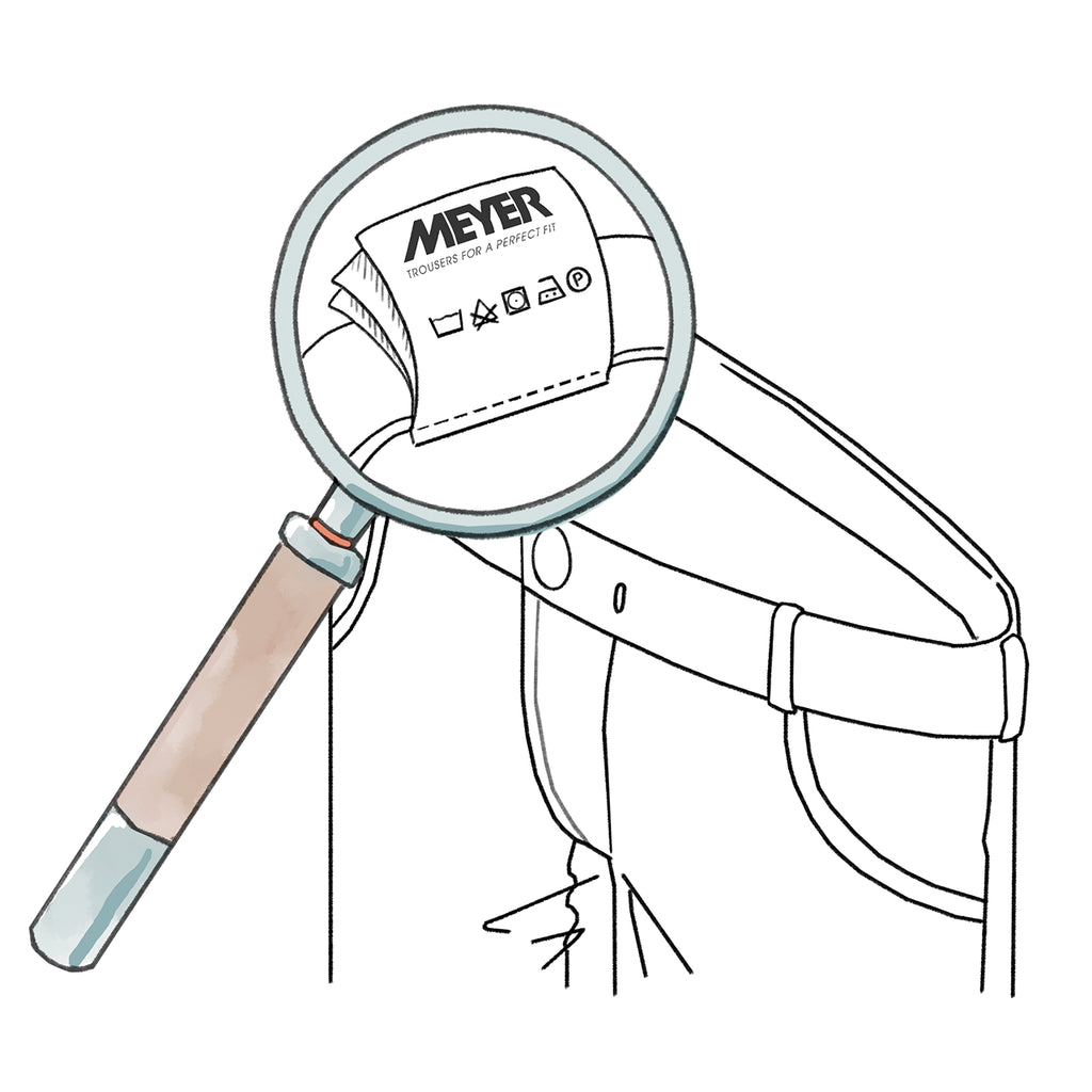 Les pantalons en 100 % pure laine vierge ne sont généralement pas destinés à être lavés chez soi. Dans ce cas, il est préférable d’opter pour le nettoyage à sec (P). La plupart des pantalons en laine MEYER peuvent toutefois être lavés en machine à la maison grâce à leur teneur en polyester. Néanmoins, il convient d’appliquer la règle de base suivante pour la laine : limiter au maximum le brassage afin d’éviter le boulochage (formation de petites boules sous l’effet du feutrage), mais utiliser autant d’eau que possible.