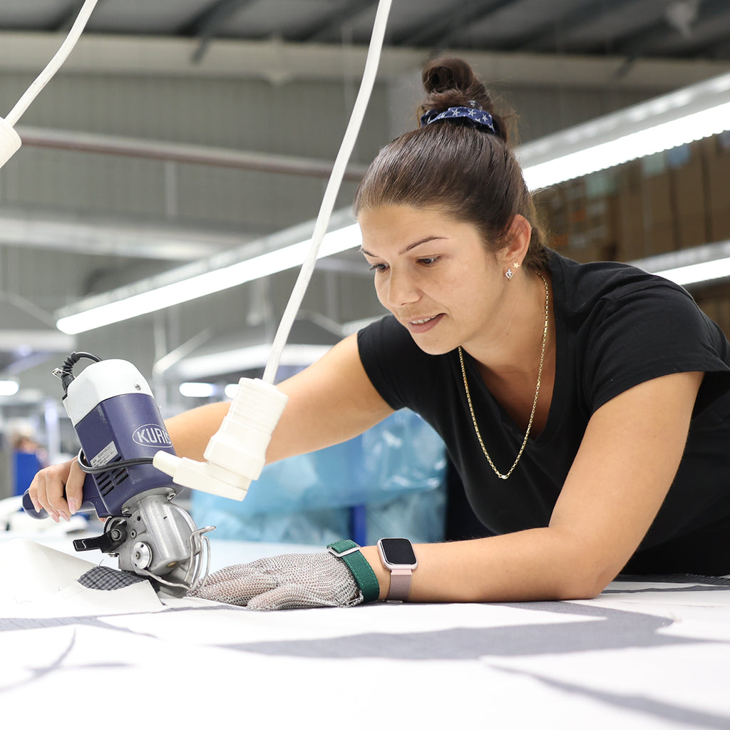 We werken met Europese stofleveranciers intensief samen aan de nieuwe collecties. In een productprofiel hebben we hiervoor de kwaliteitseisen van MEYER gedefinieerd die telkens opnieuw worden getoetst volgens actuele standaarden. Alleen stoffen die zich hebben bewezen, zijn toegelaten voor verdere verwerking. Ook de zogenaamde ingrediënten zoals knopen, garens of ritssluitingen komen hoofdzakelijk uit Europa. Ze bestaan veelal uit natuurlijke materialen of zijn gerecycled.
